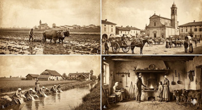 Al termine della celebrazione, alle 6 e mezza del mattino, tornarono a casa, riposero il piccolo nel suo lettino e si prepararono ad affrontare l’ennesima giornata di lavoro nei campi, che durò fino a tarda sera, quando i loro occhi si chiusero per la stanchezza. A differenza di quegli anni bui e pieni di solitudine, questa volta le prospettive di Severino e Francesca erano diverse, tanto da iniziare a fare progetti per un futuro nuovo. La nascita del figlio aveva dato loro speranza e quella famiglia che risiedeva da oltre duecento anni al Burg stava cercando di “cambiare aria”. L’alluvione del 1808 aveva ridotto drasticamente le loro risorse e il paese, per Severino iniziava a non essere più quello che ricordava. Il padre Giulio era riuscito ad acquistare un terreno nella vicina Cairo e aveva messo da parte qualche risparmio che, per fortuna, non era andato perduto. Severino, con quella somma, iniziò a pensare che forse era arrivato il momento di staccarsi da quella terra ed andare in un altro posto dove c’erano più lavoro e più prospettive. Le terre degli Isimbardi, ricca famiglia milanese ma originaria del pavese avrebbero potuto garantire a Severino e alla sua famiglia un futuro migliore.